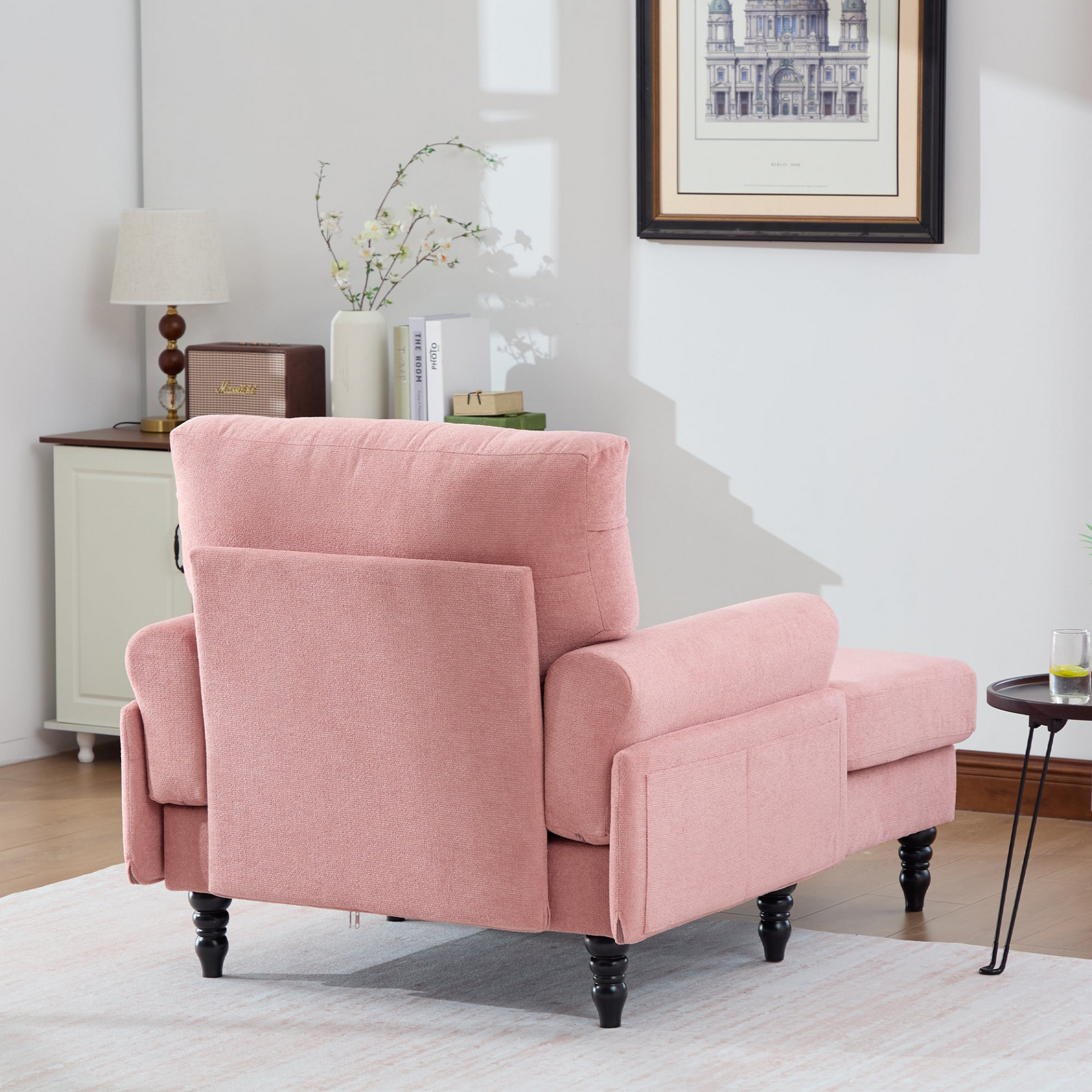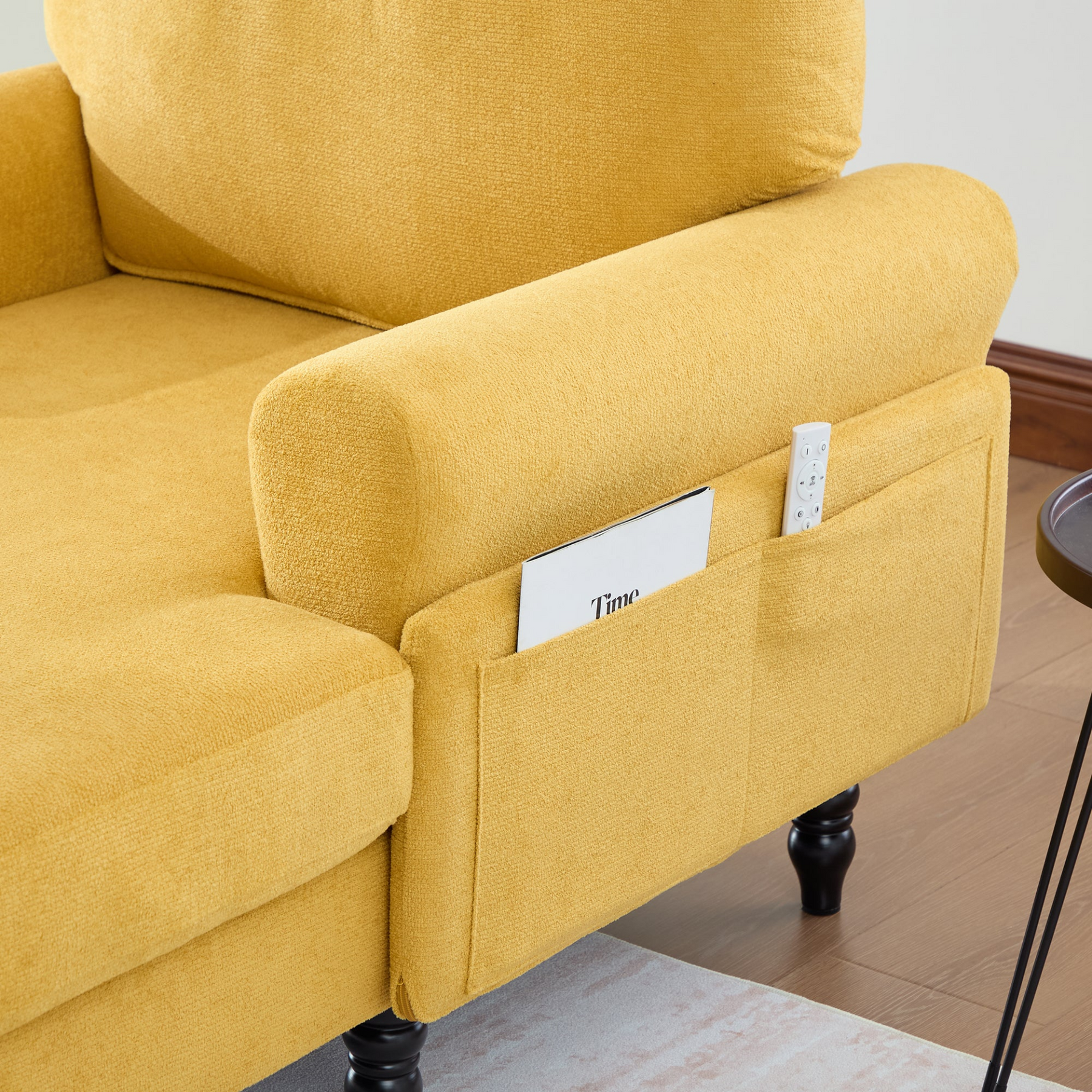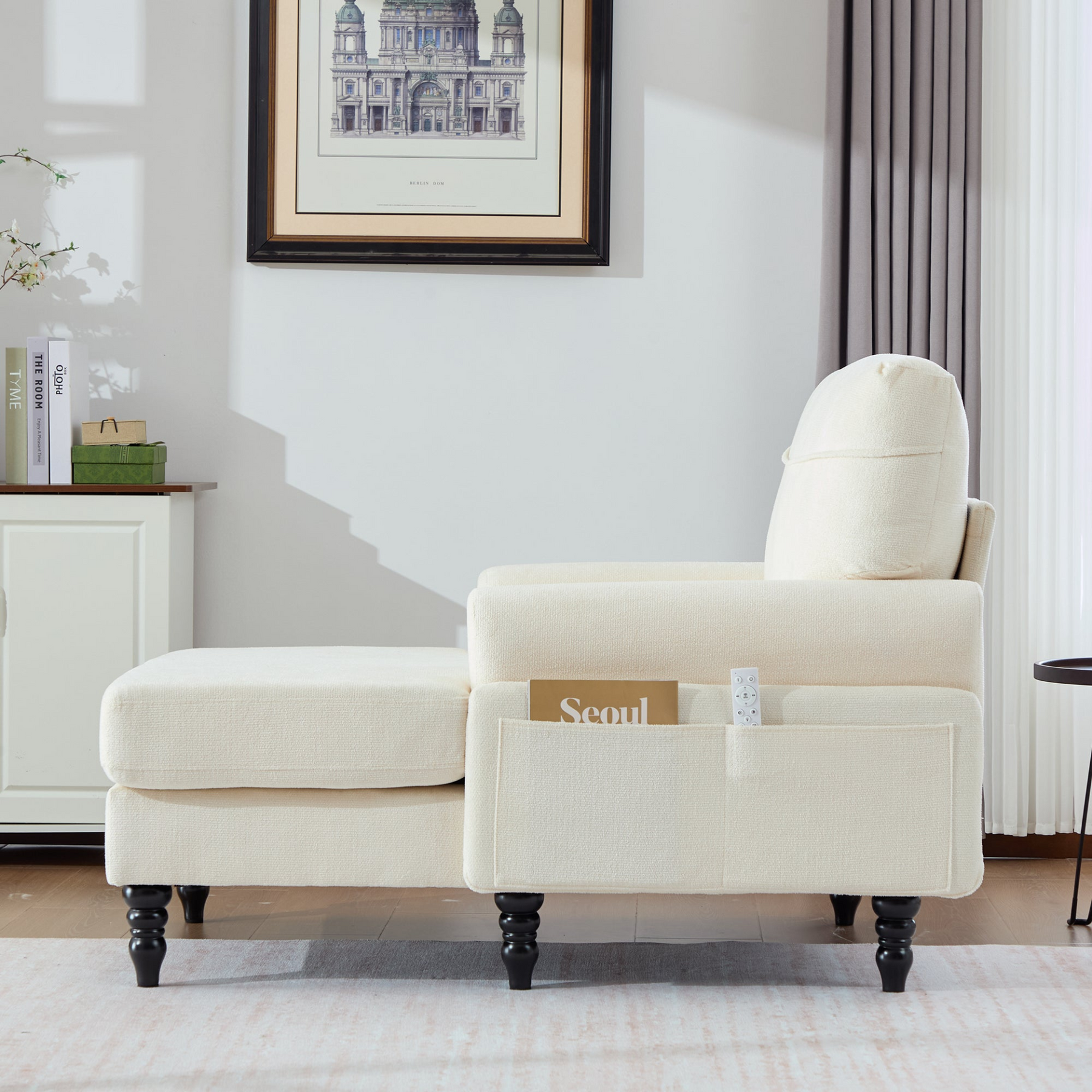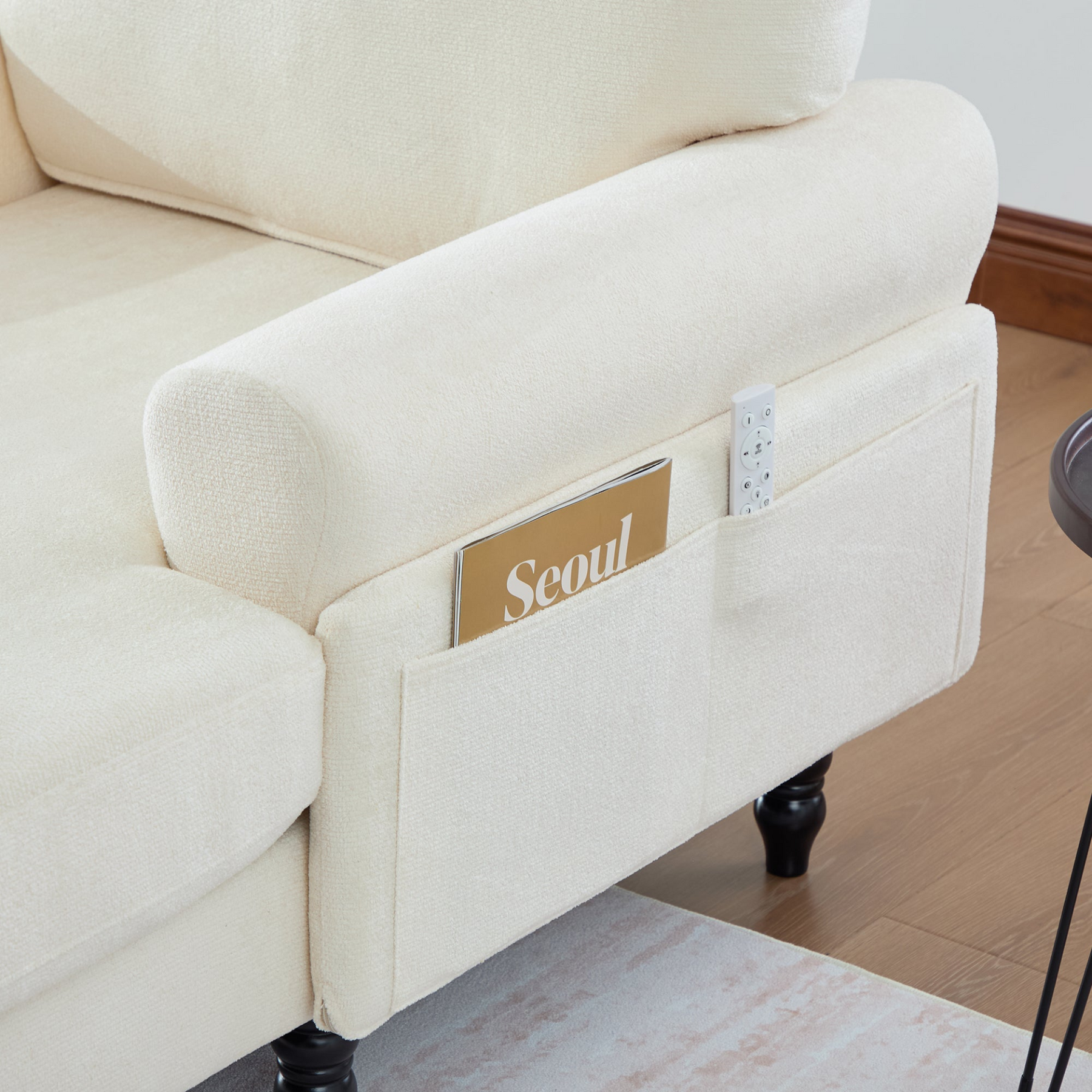Built for stability, the solid wood legs feature an anti-slip design and strong weight capacity for confident seating. Convenient side pockets keep essentials like remotes and magazines within reach, while removable cushion covers are machine washable for easy care. With clear instructions, numbered parts, and included tools, assembly is straightforward and can be completed in about 30 minutes with two people.