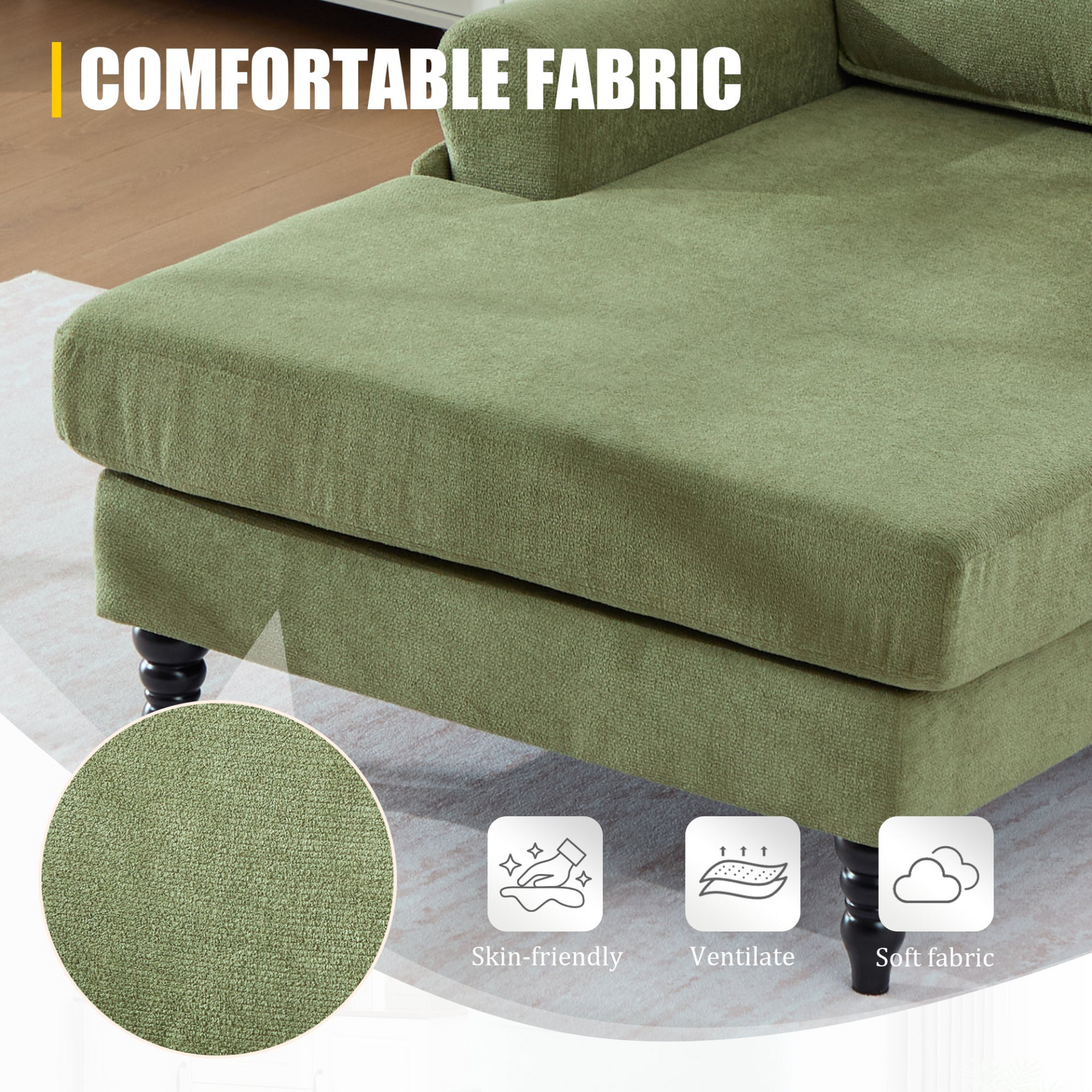 - Durable chenille fabric: soft, breathable, and resistant to pilling and fading.