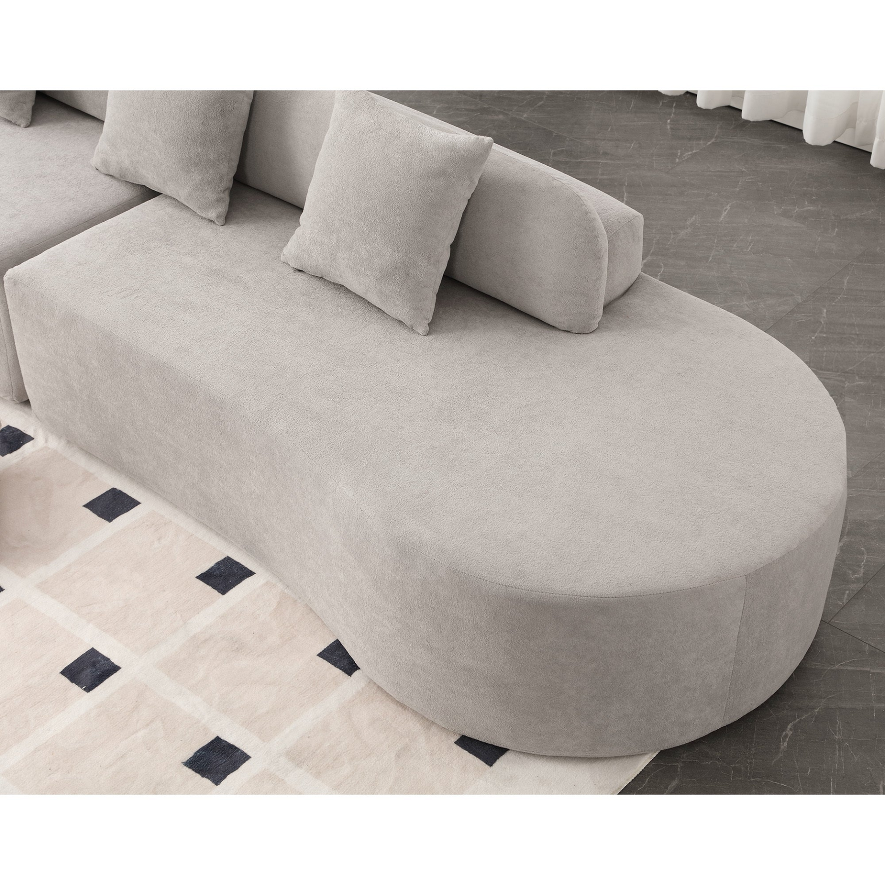 Bring modern, minimalist style to your primary living space with a curved modular sofa designed for “cloud comfort.” The ergonomic silhouette supports your body as you sink into plush, medium-soft cushions—ideal for lounging, reading, or movie night. Upholstered in breathable, high-resilience terrycloth fabric, it feels ultra-soft, resists deformation, and is built for everyday durability. A sponge structure with spring-wrap support adds long-lasting comfort and a family-friendly, soft-touch feel. Removable cushions make upkeep simpler, and pillows are included for extra relaxation.